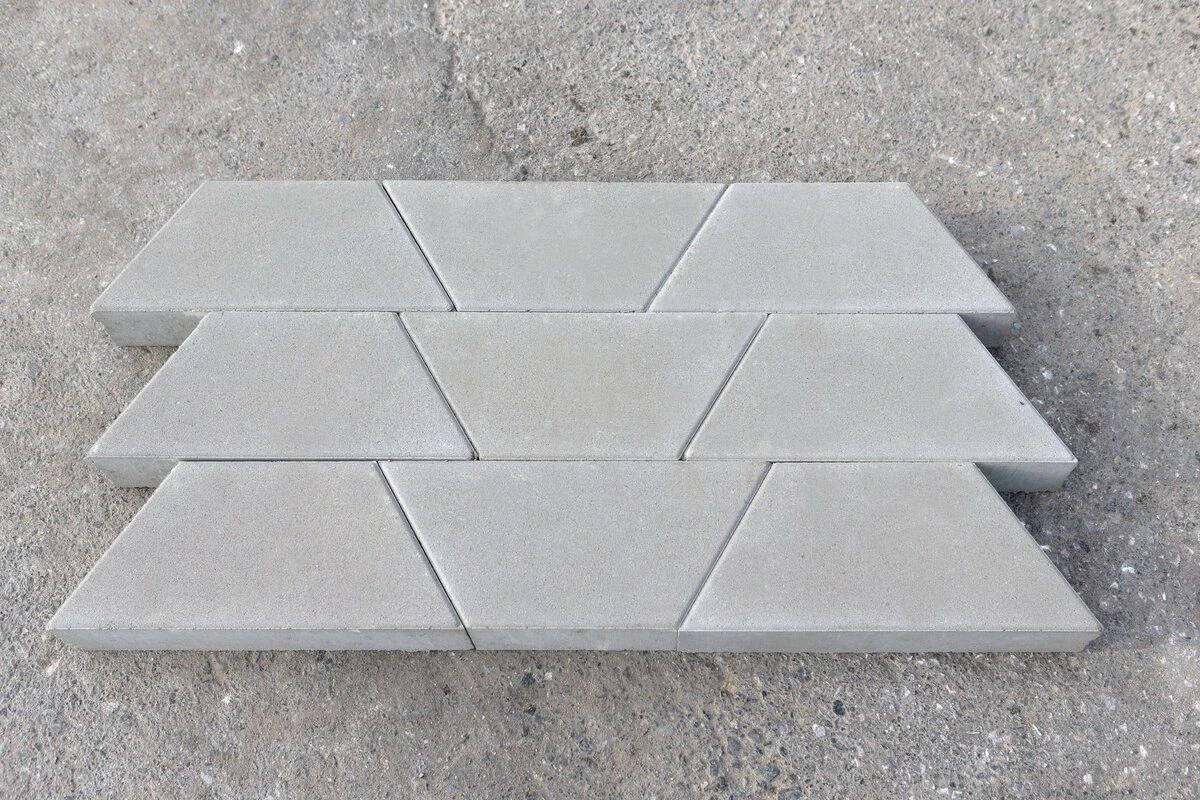 Тротуарная плитка Трапеция 1.Т.8, цвет — серый. Изготавливается по уникальной технологии методом полусухого вибропрессования из бетона. Поверхность серого цвета.