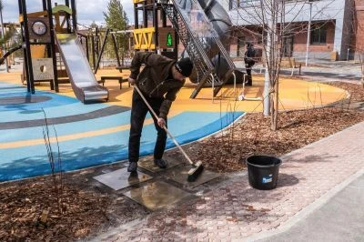 1. Уборка мусора: Тщательно подмести плитку, убрать листья и крупный мусор.