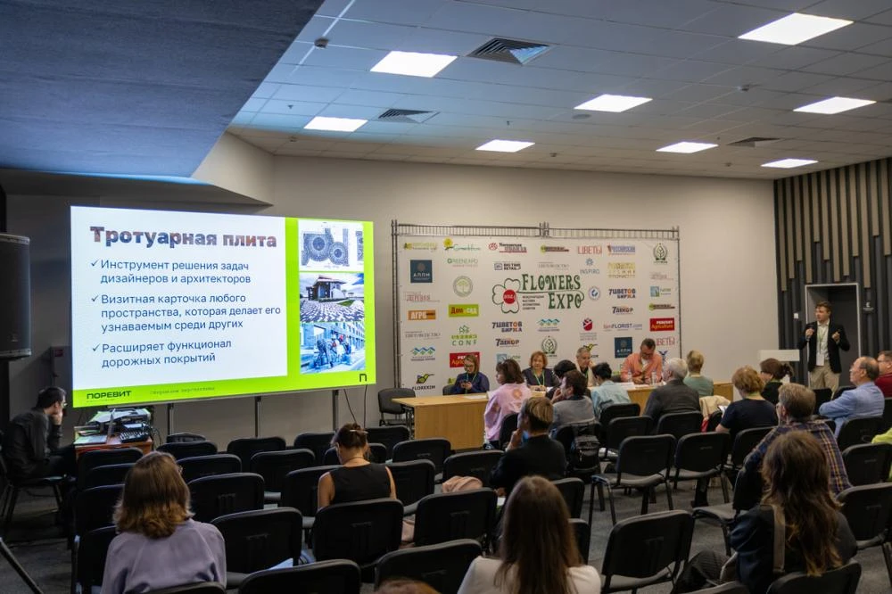 Завод тротуарной плитки «Поревит» выступил партнером Всероссийской конференции «Актуальные направления развития ландшафтной индустрии при реализации проектов благоустройства общественных городских пространств»