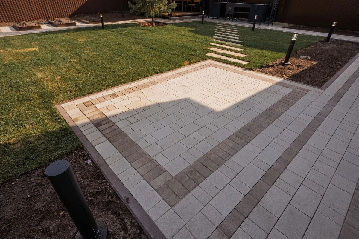 • Благоустройство территории дома в Луговом: плитка Старый город, Доломит