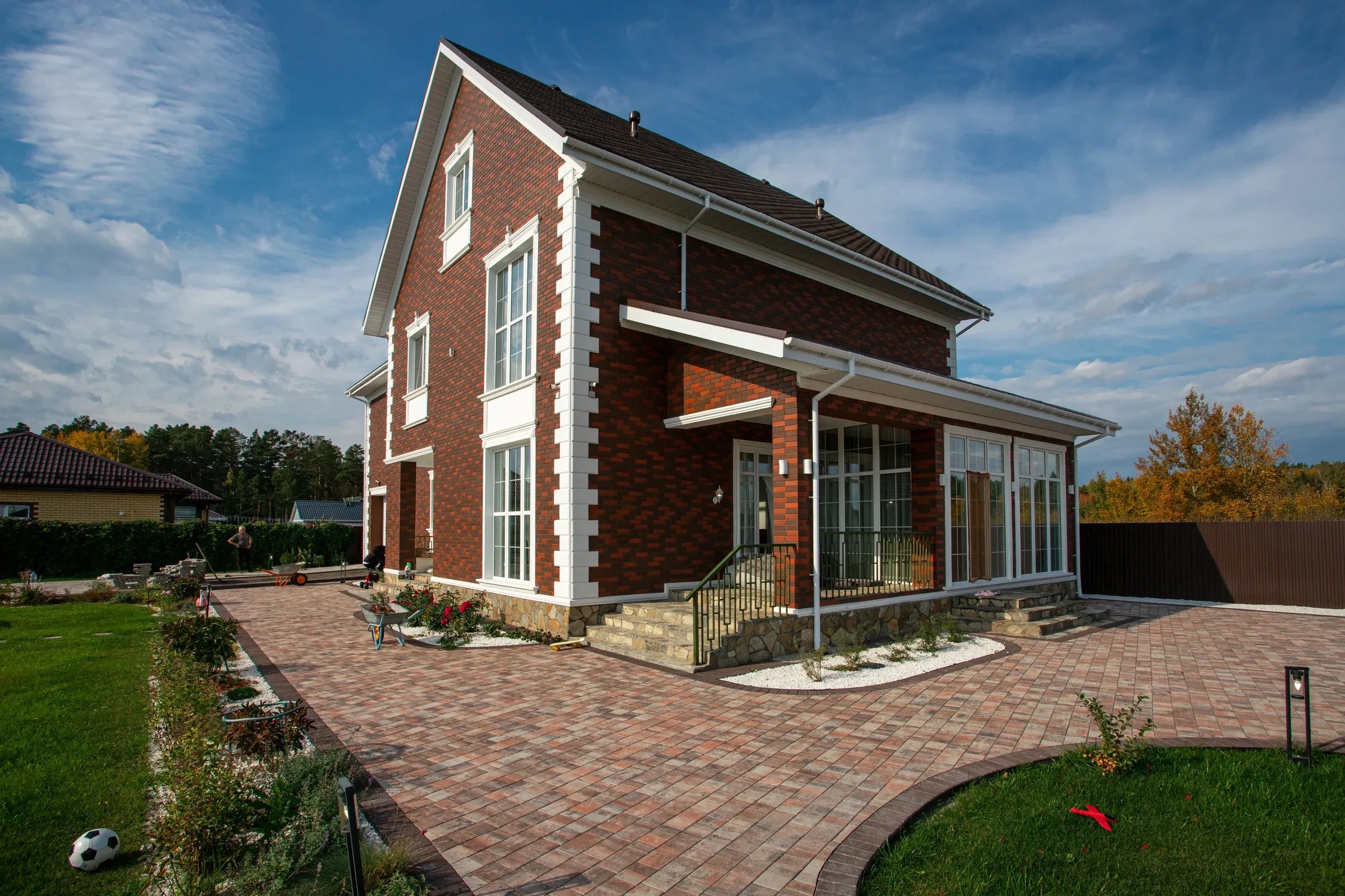 • Благоустройство территории дома в Луговом: плитка Старый город, Доломит