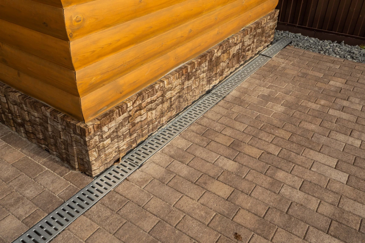 - Для отмостки возле бани была использована тротуарная плитка Прямоугольник 100*200 мм. в коллекции Листопад Гранит, цвет Хаски.
