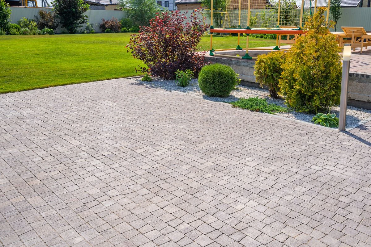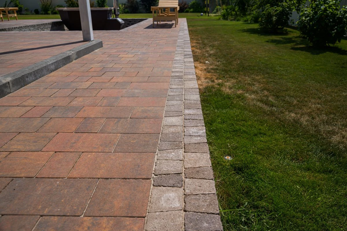 В 2020 году была уложена плитка Абрис в зоне парковки транспортных средств. За это время плитка хорошо сохранилась. В этом году было принято решение о дальнейшем благоустройстве территории, и была оформлена зона террасы. Здесь использована плитка Старый город, цвет Арабская ночь. В этой зоне гости могут отдохнуть на лежаках и искупаться в банном чане.