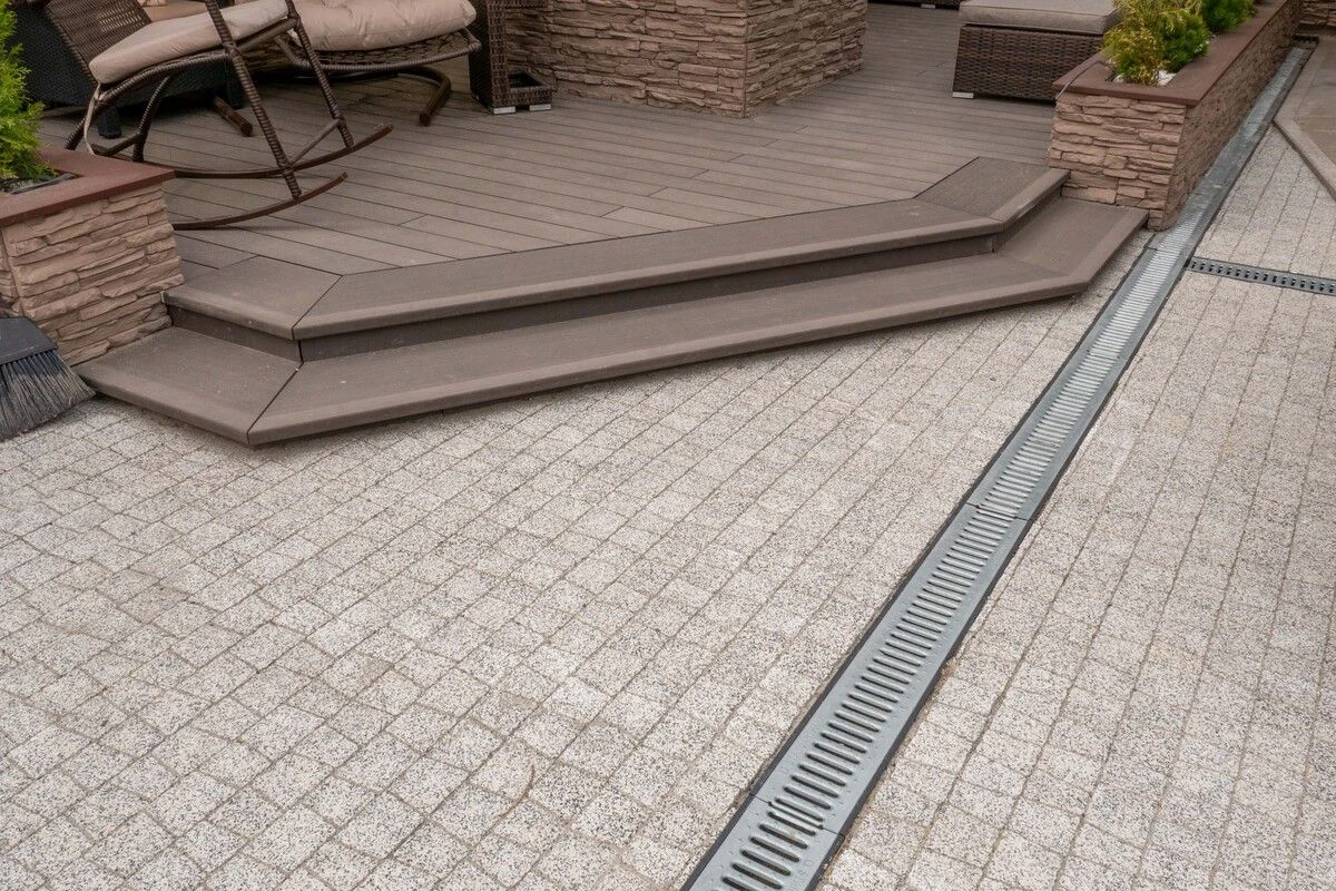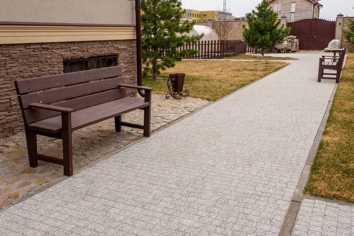Закончены работы на территории частного домовладения по укладке тротуарной плитки. Заказчик пожелал оформить парковочную зону, пешеходные дорожки и зону отдыха. Для благоустройства использована: тротуарная плитка «Прямоугольник» 200*200 мм, в коллекции Гранит желтого и коричневого цвета плитка Прямоугольник размерами 100*200 мм, в коллекции Гранит коричневого цвета плитка «Абрис» в коллекции Мрамор, бело-черного цвета.
