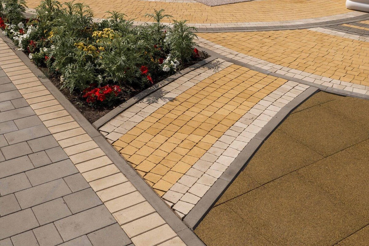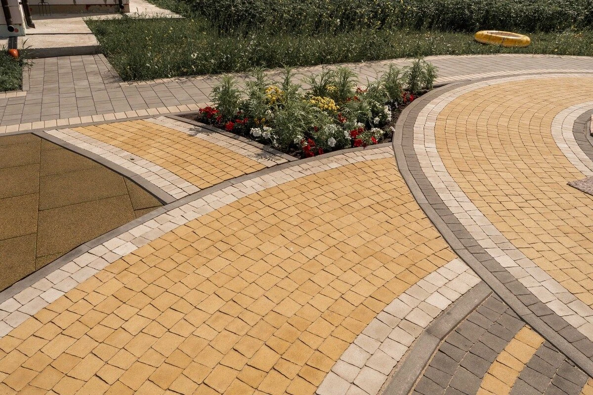 Тротуарная плитка Стандарт серая, белая и желтая