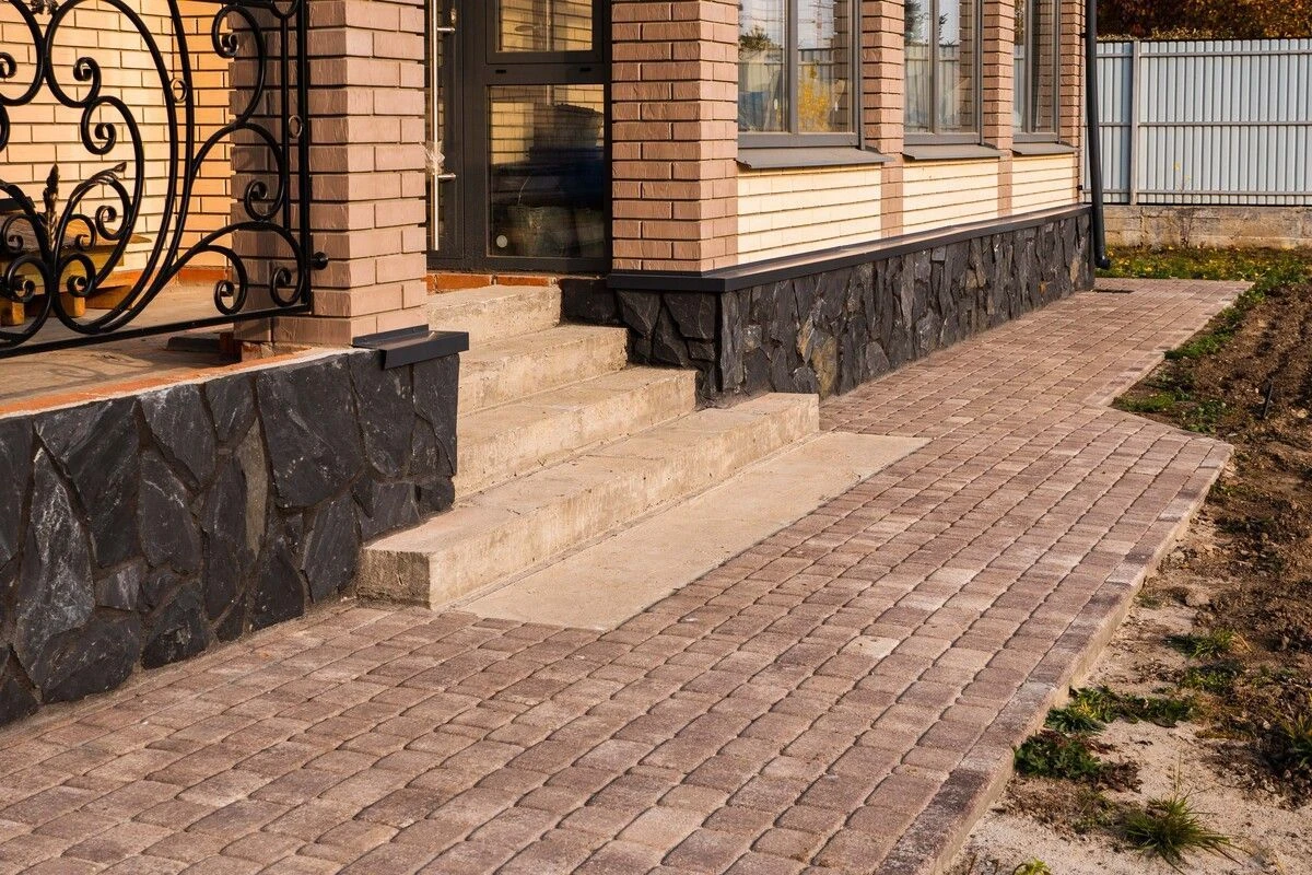 • Благоустройство дома: плитка в цвете Антрацит и шаговые дорожки