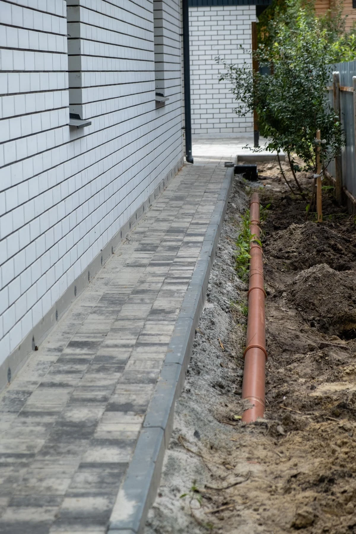 На данном участке выполнены работы по водоотдведению, установке водосборных лотков, дренажных труб.