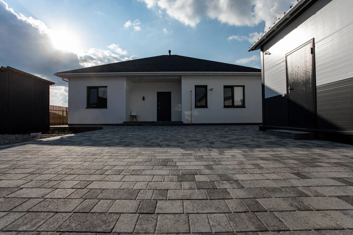 • Благоустройство дома: плитка в цвете Антрацит и шаговые дорожки