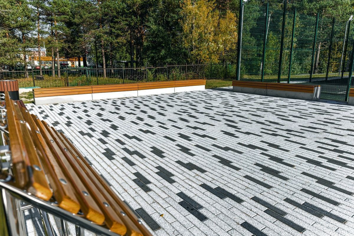 • Укладка бетонной плитки серого цвета в Комарово