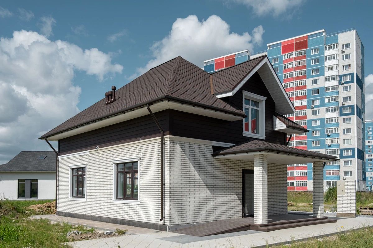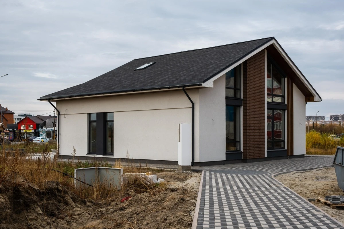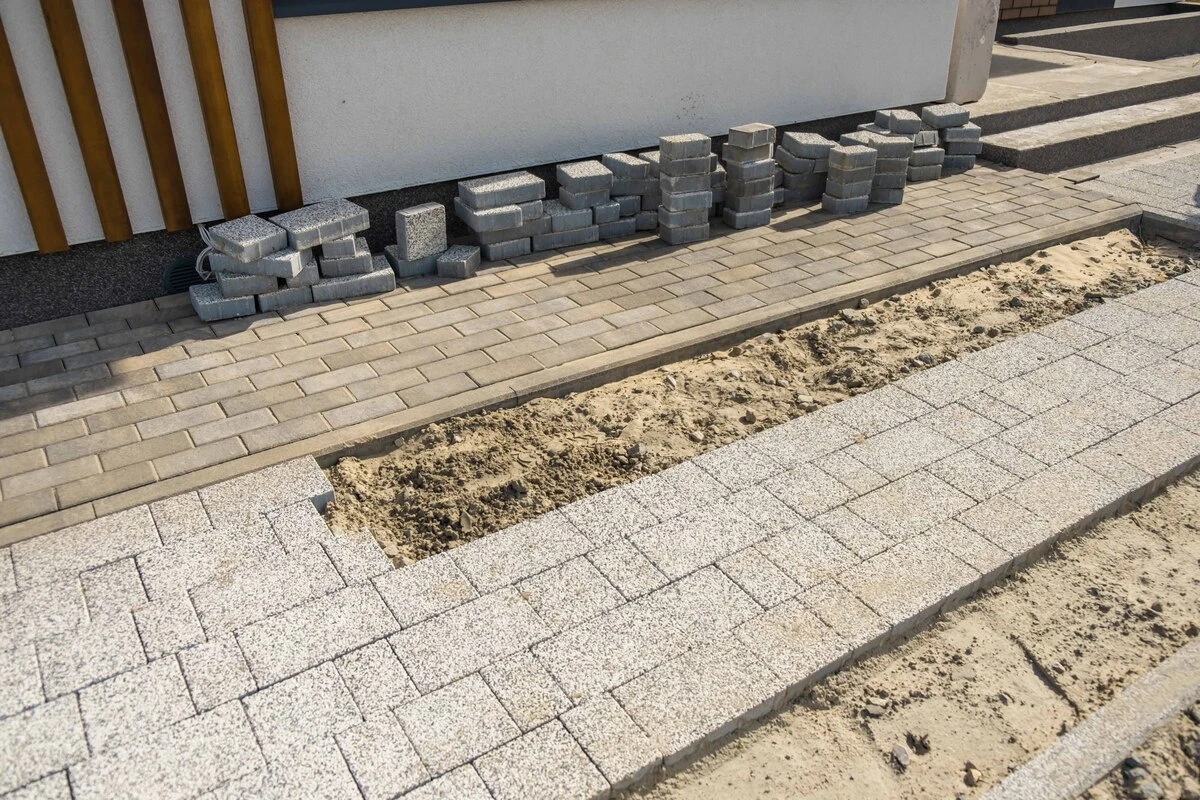 Пешеходные дорожки и отмостка выполнена тротуарной плиткой с применением бордюров.