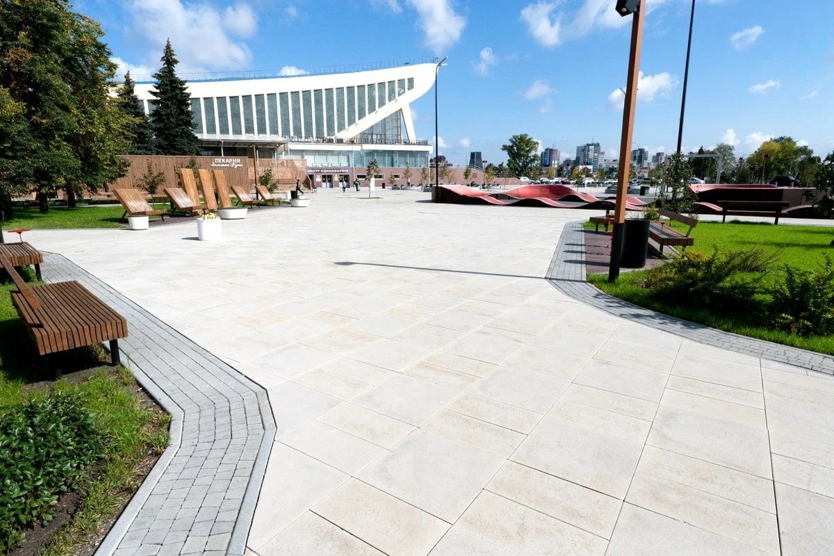 • Ландшафтный дизайн в Тюмени с плиткой Ригель, Трио, 300х900 мм