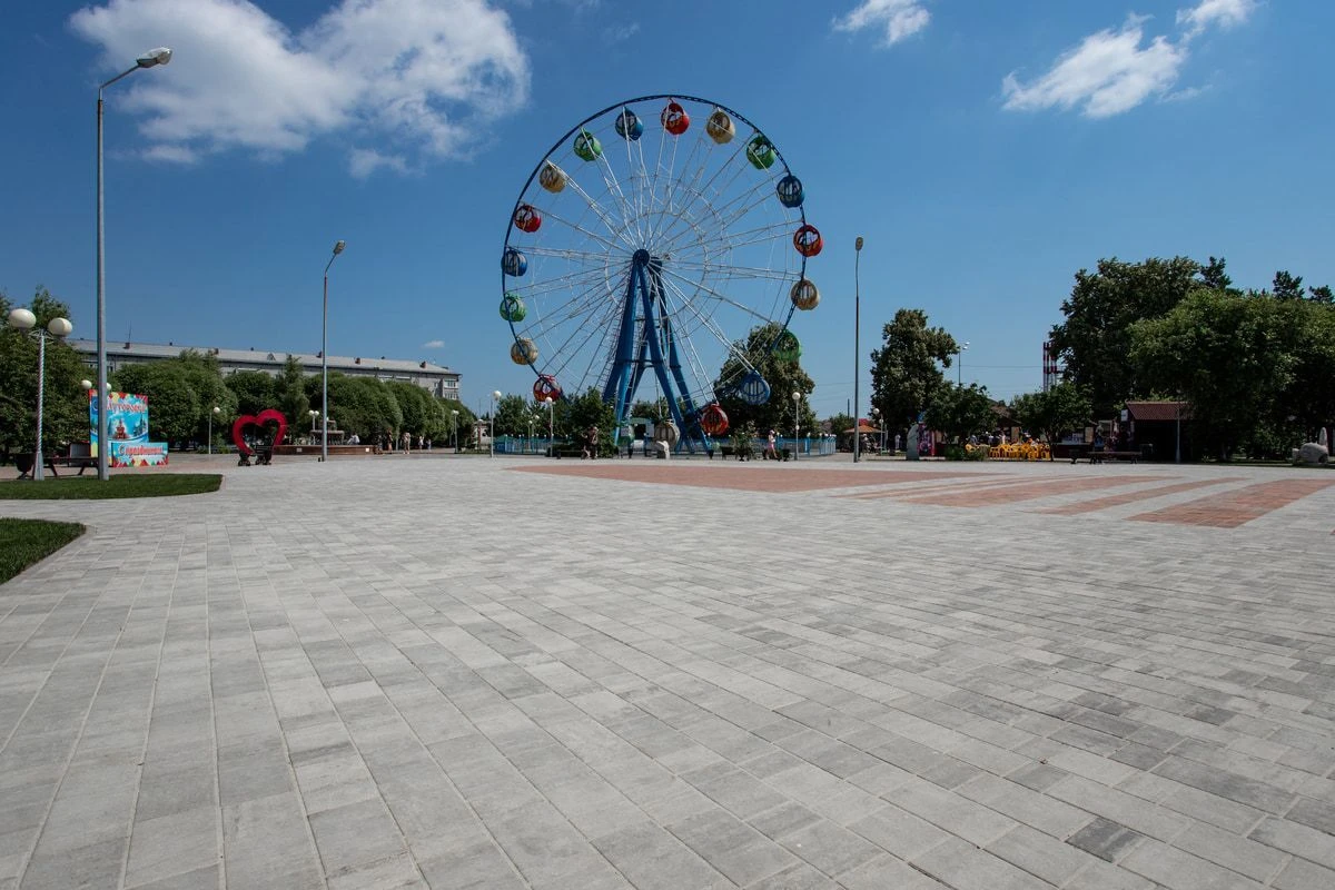 Для обновления территории понадобилось 950 квадратных метров плитки Старый город в цвете Шунгит и Арабская ночь, а также Абрис в цвете Арабская ночь.