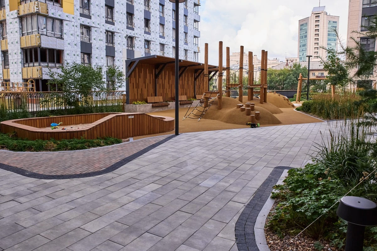 • Ландшафтный дизайн в Тюмени с плиткой Ригель, Трио, 300х900 мм