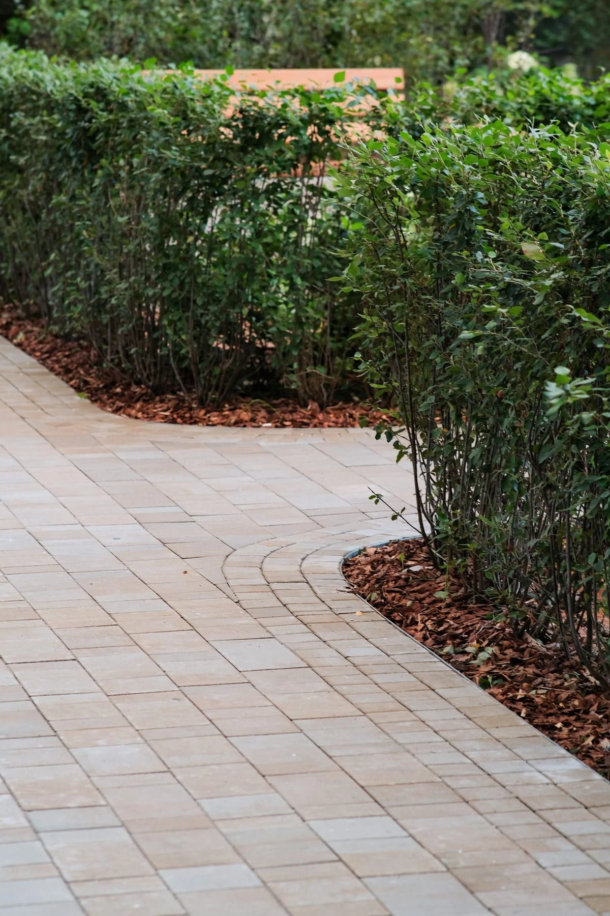 • Ландшафтный дизайн участка с укладкой плитки Старый город и Паркет 180х60 в Тюмени