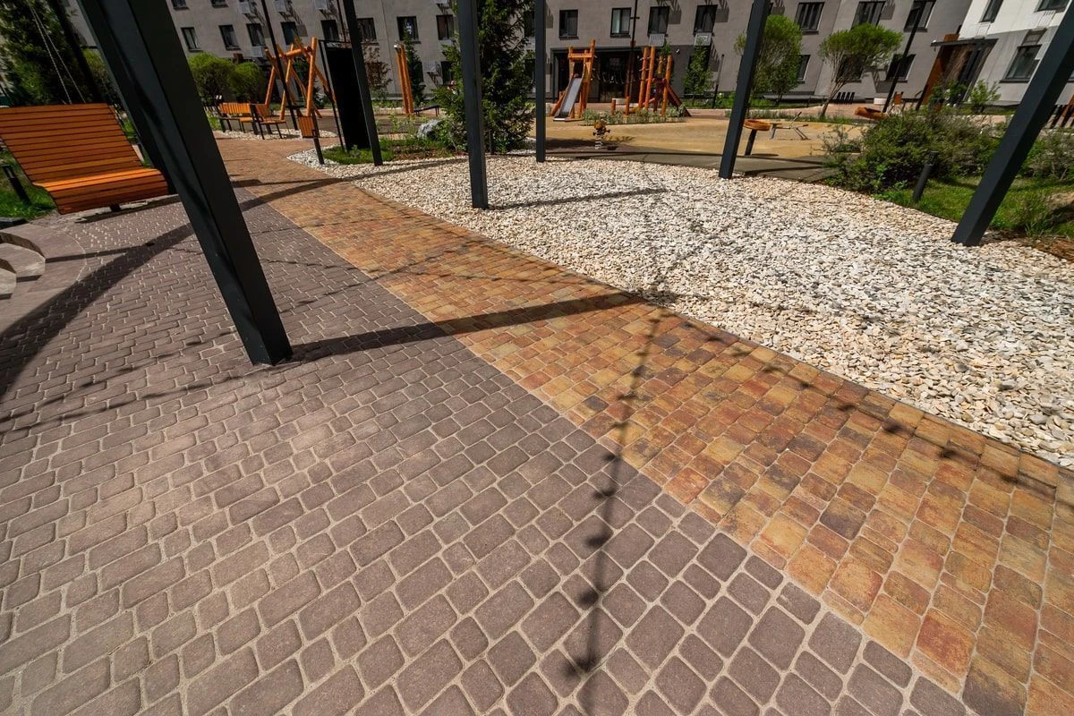 • Благоустройство территории дома в Луговом: плитка Старый город, Доломит